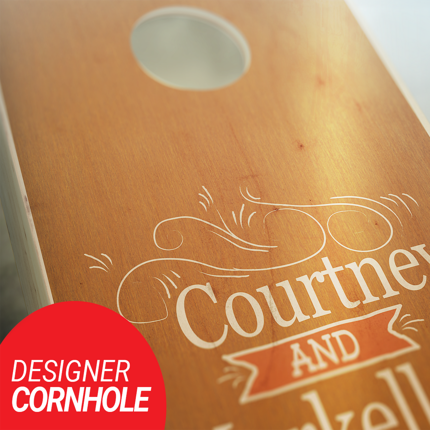Personalized Flourished Names Maple Wedding Cornhole Set