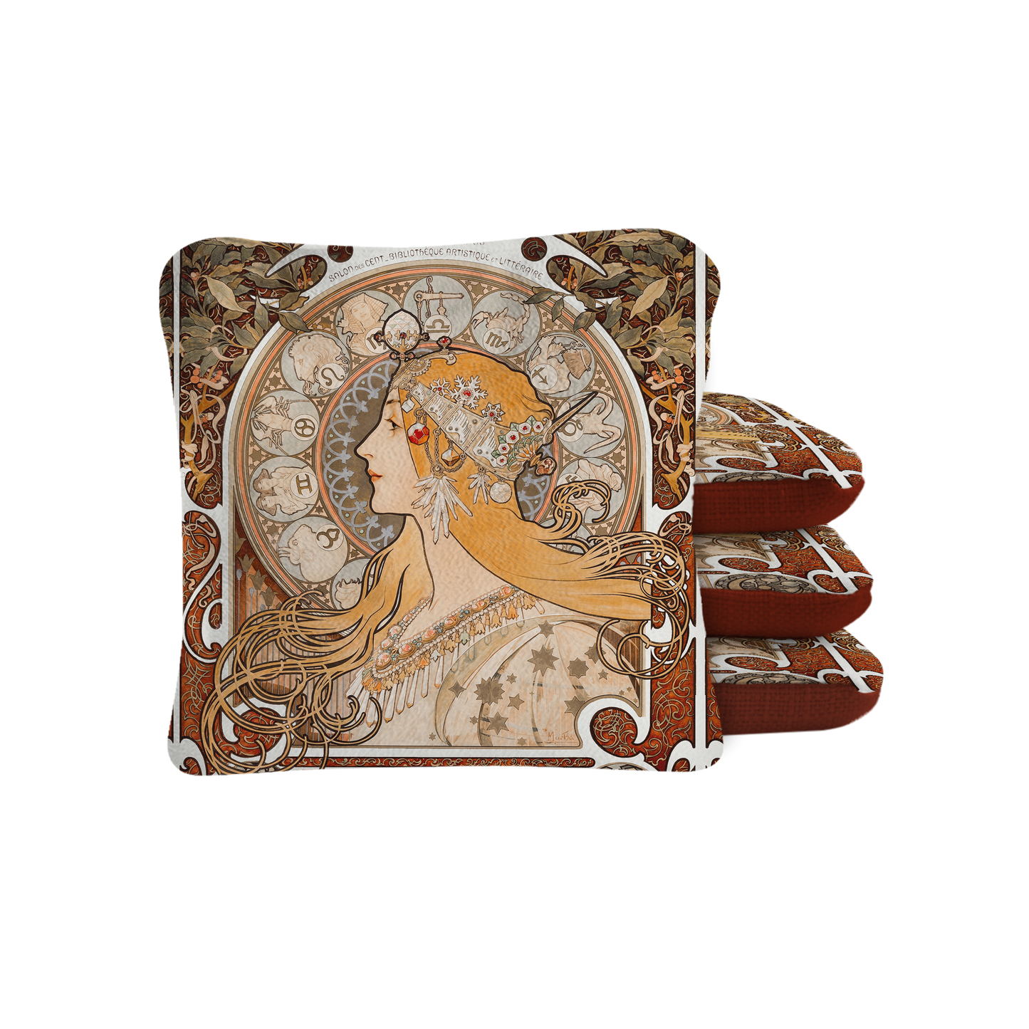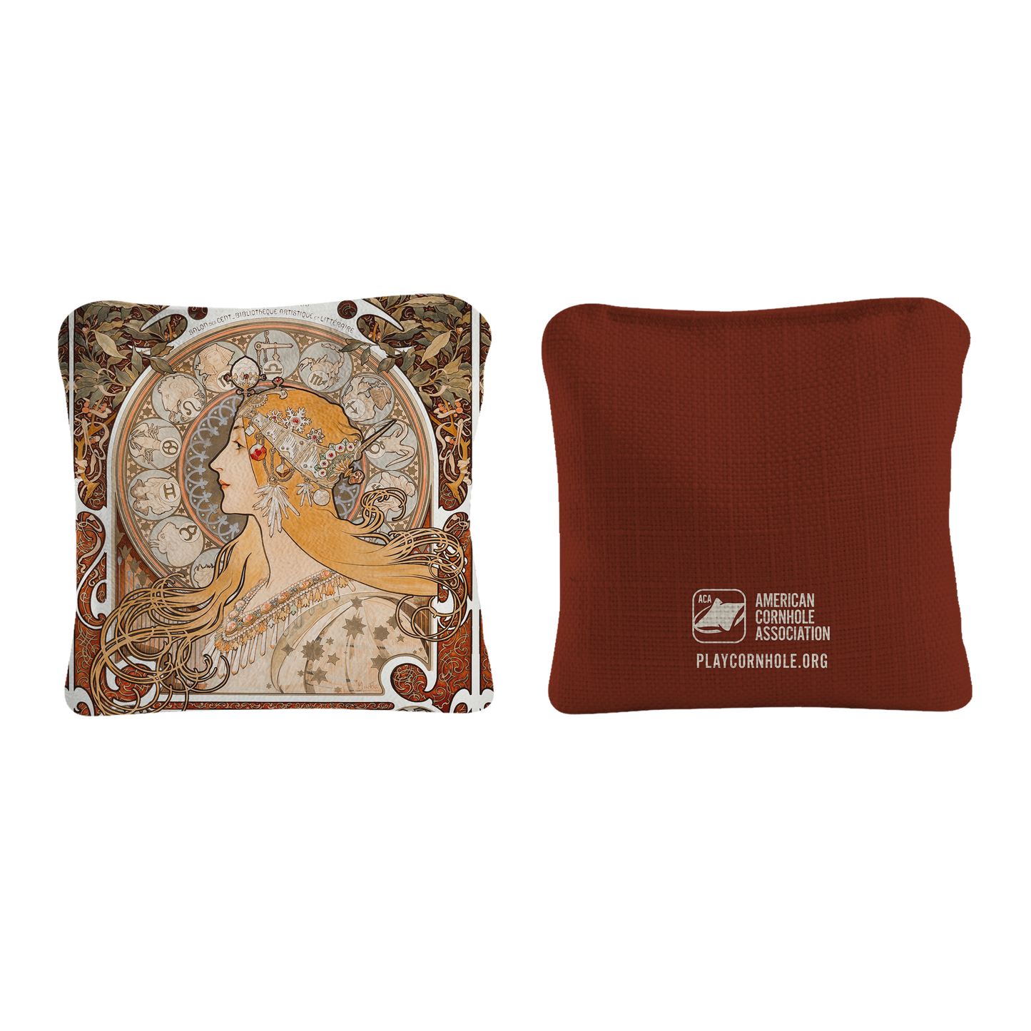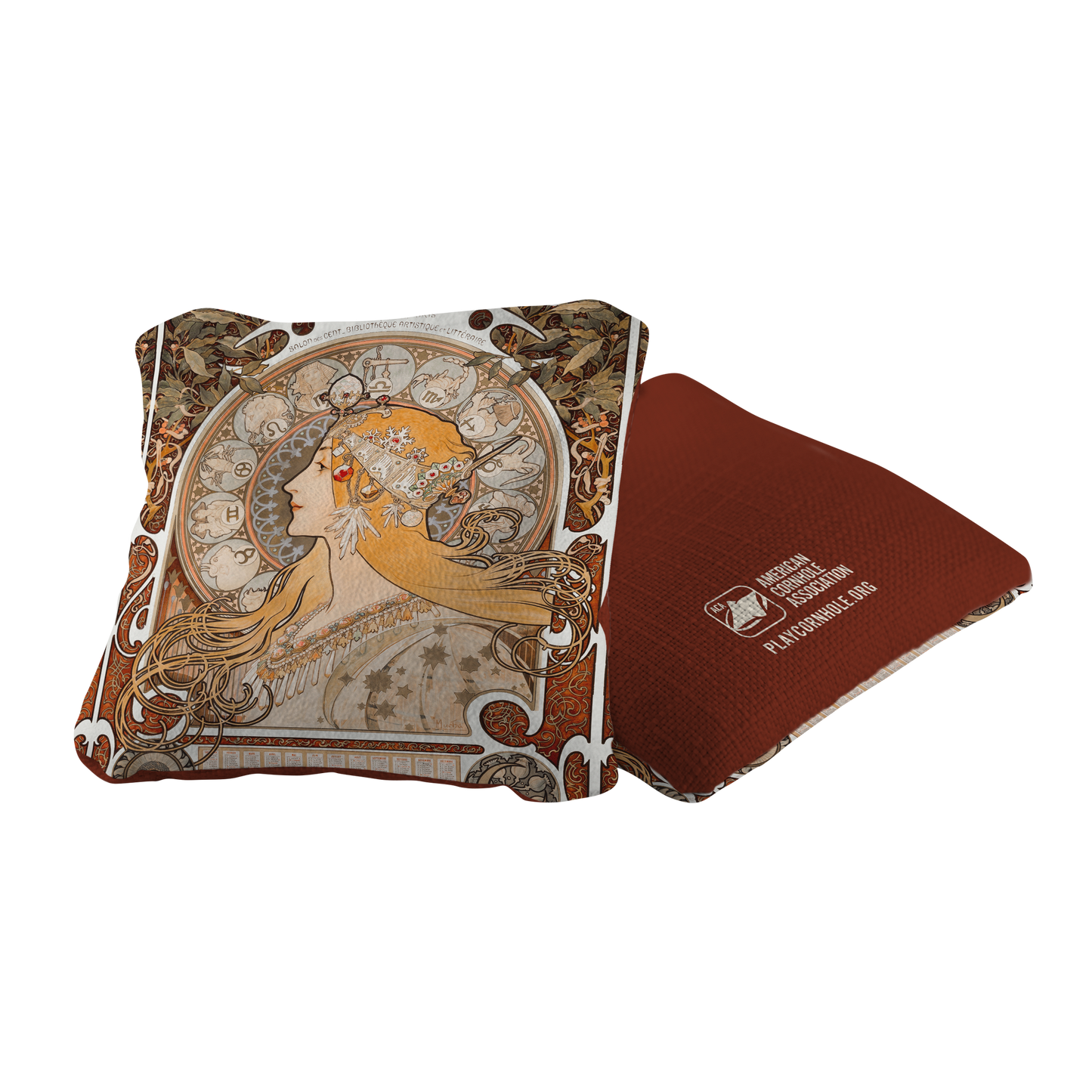 La Plume by Alphonse Marie Mucha Synergy Pro Cornhole Bags Red